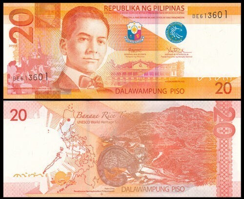 Banknote - 2017 Philippines, 20 Piso, P206 UNC, ML Quezon(F) Civet & terraces(R)