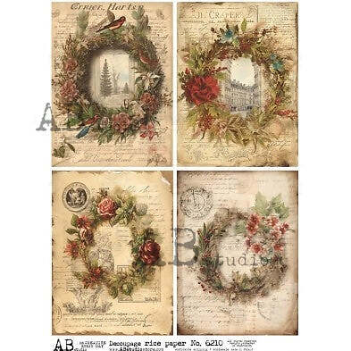 Christmas Wreaths | A4 Rice Paper | Paper for Decoupage | AB Studios