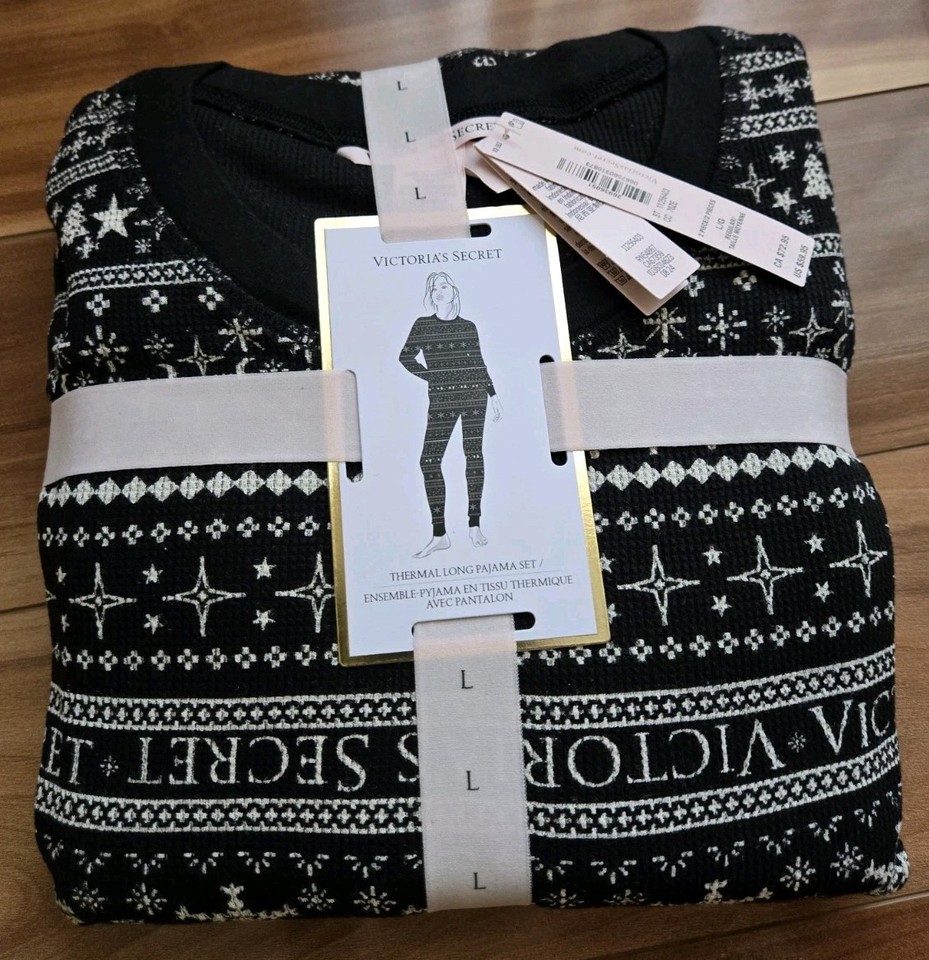 NWT Victorias Secret Thermal Pajama Set L Regular Black Fair Isle Lounge Legging