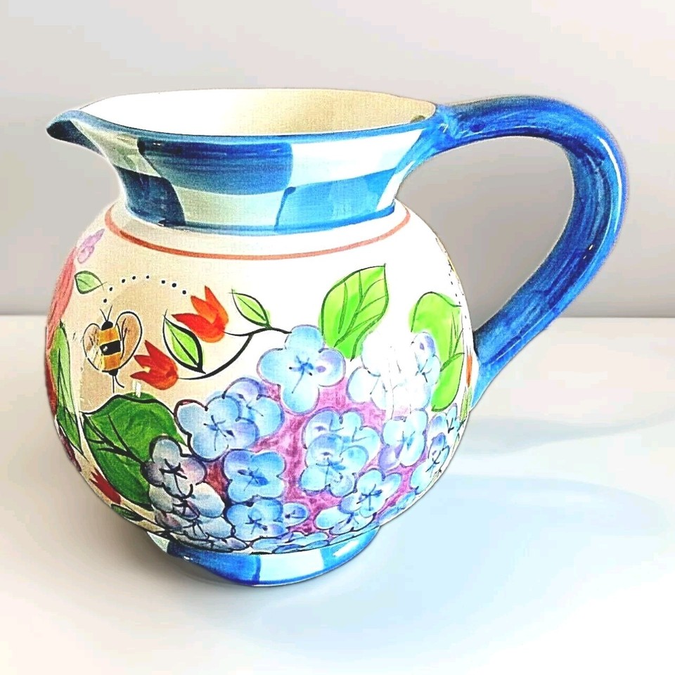 * 8 Inch Tall Ball Shaped Ceramic Carolines Garden Pitcher -Hand Painted
