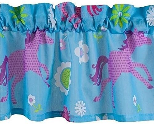 Turquoise Western Cowboy Horse Mustang Pony Pink Floral Curtain Valance