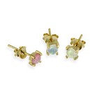 Gold over 925 Silver Round Lab Created Opal Stud Earrings Set