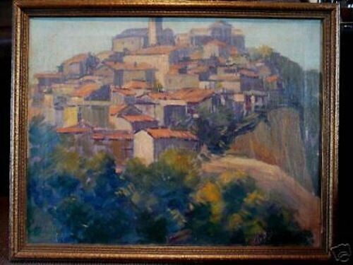 VILLAGE ITALIEN GRAZZAO Huile sur toile PEINTURE ANCIENNE