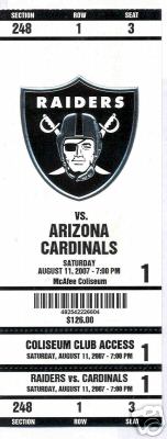 Oakland Raiders Arizona Cardinals 8/11/07 Full Unused Ticket