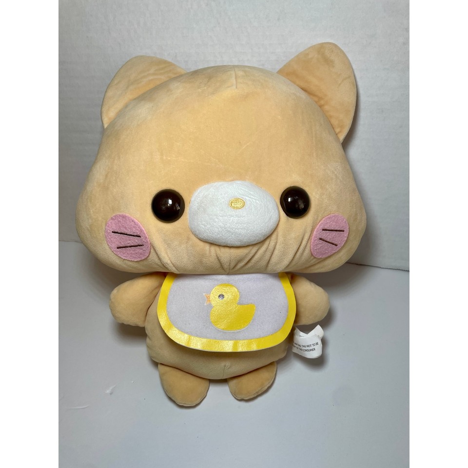 Ichi Trading Cat 12" Stuffed Plush Beige Kitten Kitty Baby Duck Bib Kawaii k