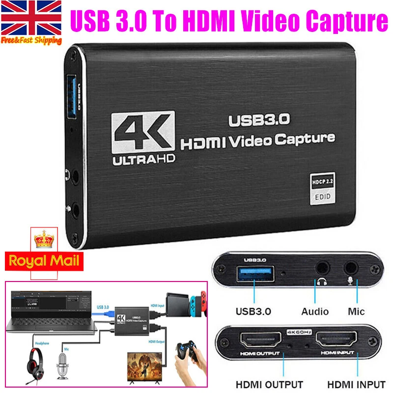 UK 4K Audio Video Capture Card To USB 3.0 HDMI Video Capture Device Full HD