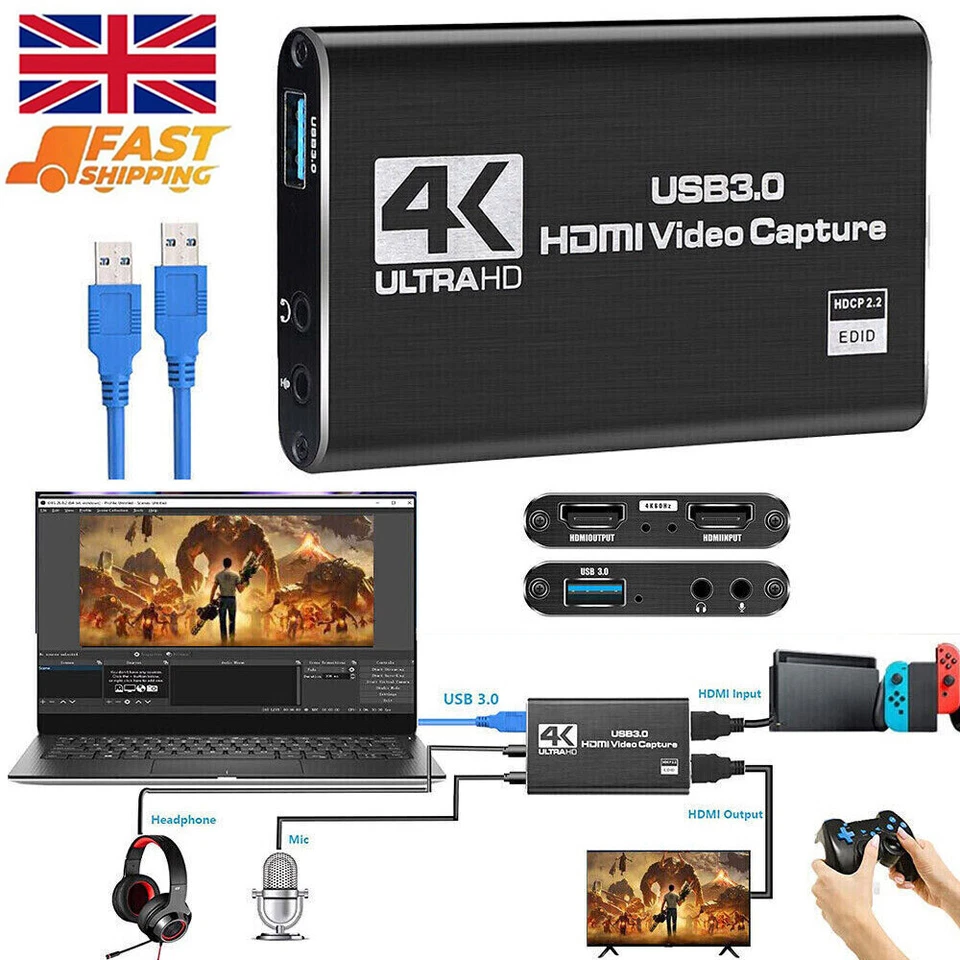 4K Audio Video Capture Card USB 3.0 HDMI Video Capture Device Full HD Adapter UK