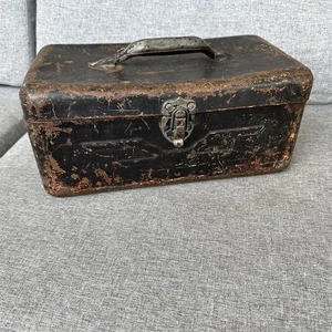 Vintage Tool Box Machine Age Industrial Hot Rod Wings Embossed Metal