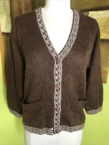 Vintage Textile San Blas Men's 100% Alpaca Cardigan Sweater Peruvian Brown S