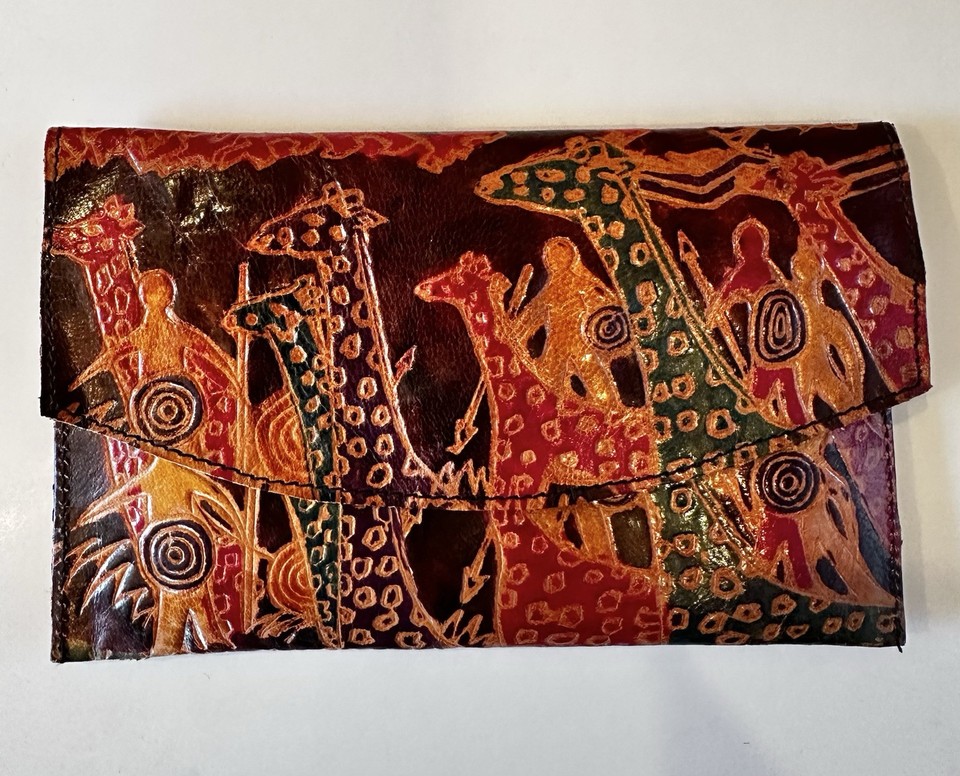 Handmade Leather Giraffe Wallet Clutch Purse Coin Hand Painted Embossed 8” L@@K