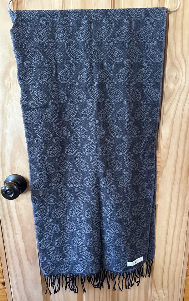 Joseph Abboud 100% Wool Scarf Made In Germany RN 66349 Paisley Gray Black
