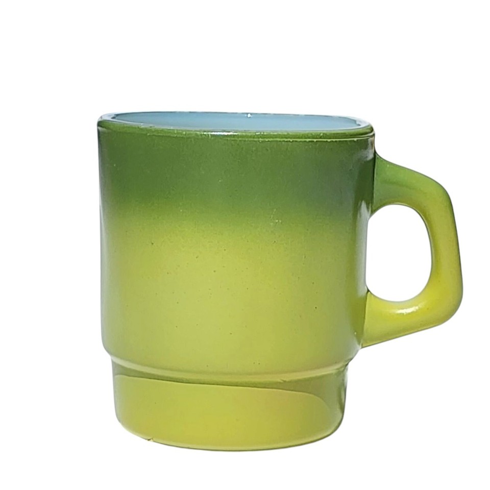 Vintage Fire King Anchor Hocking Ombre Green Coffee Mug Stackable D Handle