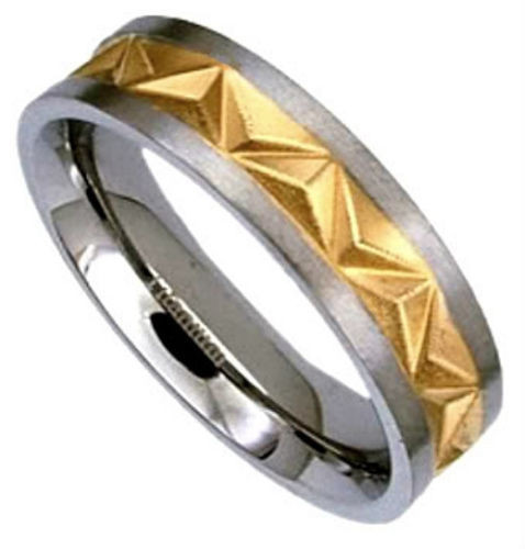 Men's Plain TITANIUM Ring with Gold Plated Engraving, Size 12 - Comfort Fit