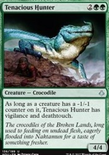 - As long as a creature has -1/-1 counter on it, Tenacious Hunter h
