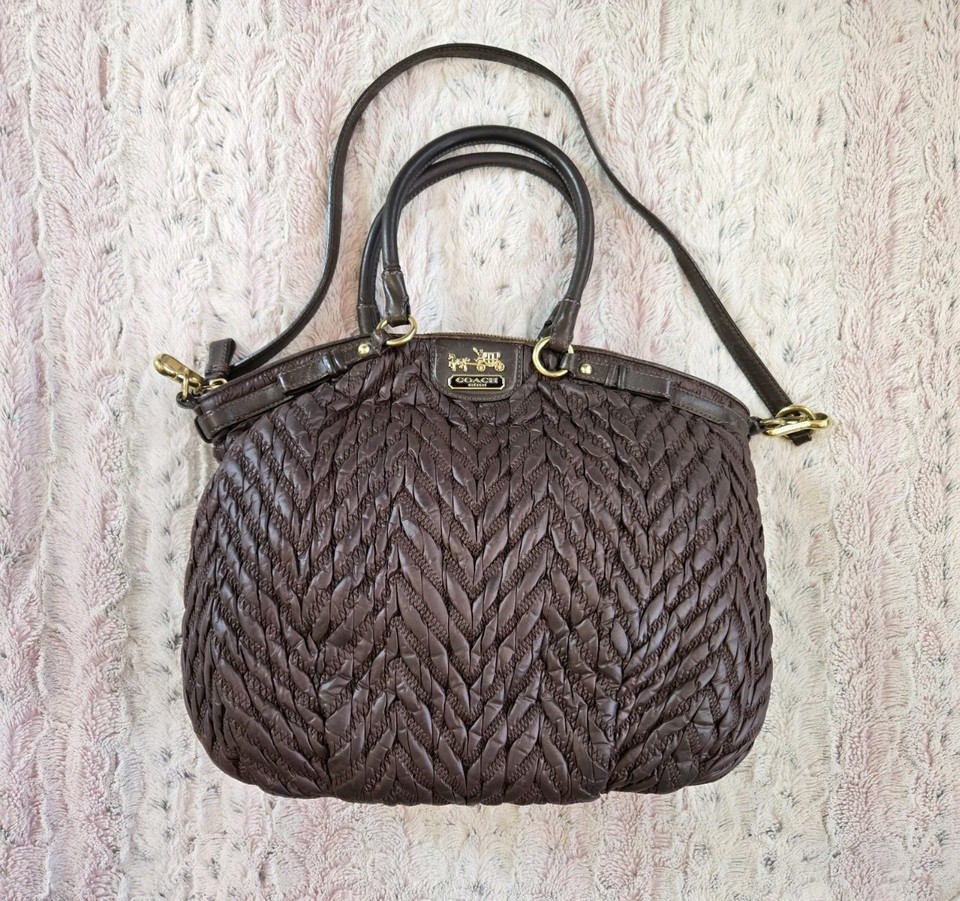 COACH 70 Anniversary Large MADISON Nylon CHEVRON Quilted Satchel Bag Dark Brown