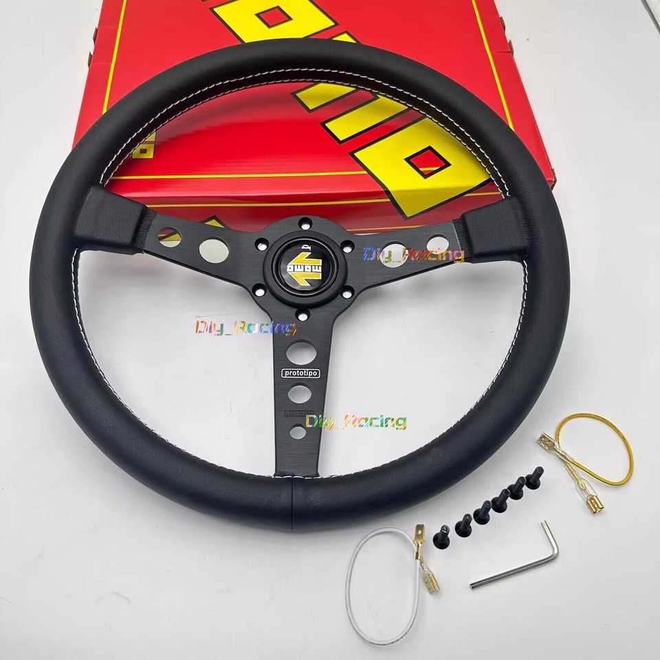 14' MOMO Genuine Leather Thickened Spoke Sport Steering Wheel with boss Kit