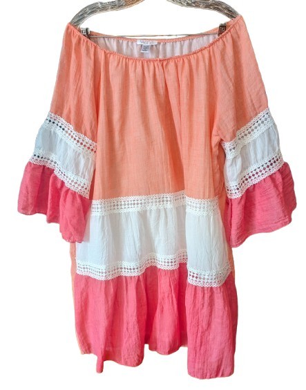 Vasna Mini Dress Colorful Peasant Layered Boho Sz Medium Pink Peach Lined
