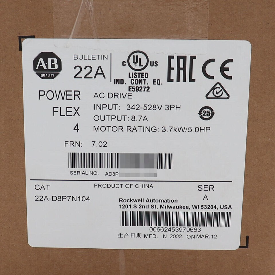 New Sealed Allen-Bradley 22A-D8P7N104 3.7 kW (5 Hp) AC Drive Fast Shipping