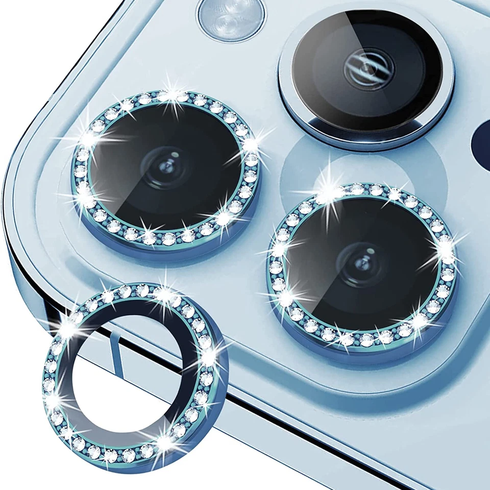 Blue For iPhone 16/16 Pro/16Pro Max 16 Plus Camera Protector Bling Diamond Lens
