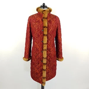 Habsburg Steppmantel Theresia Damen Gr. 38 Rot Braun Pelz Besatz Paisley Mantel