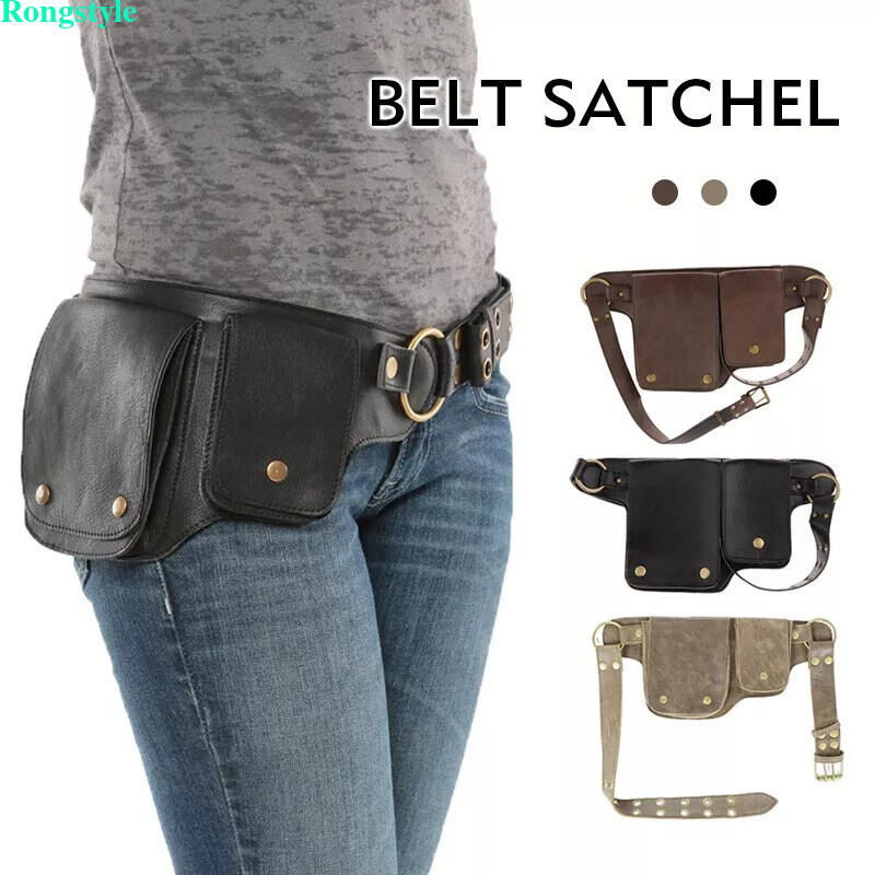 Women Medieval Steampunk Pu Leather Hip Belt Festival Pocket Waist Bag