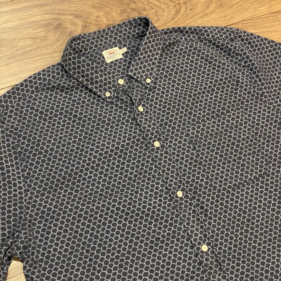 Faherty Scales Print Button Up Shirt Men’s Indigo Dyed Short Sleeve XXL