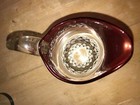 VNTG. Cranberry Ruby Red Etched Fern Floral 12" high Cut-to-Clear Glass Pitcher