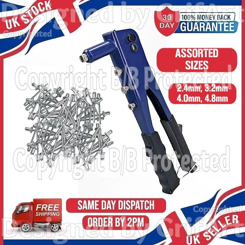 HEAVY DUTY 4 HEAD POP RIVET HAND GUN RIVETER TOOL 75 DIFFERENT SIZE MIXED RIVETS