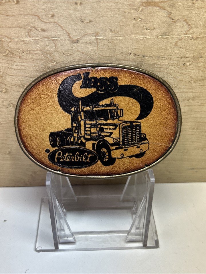 Vintage Leather Covered Brass Belt Buckle Peterbilt Class 1977 Tonkin USA