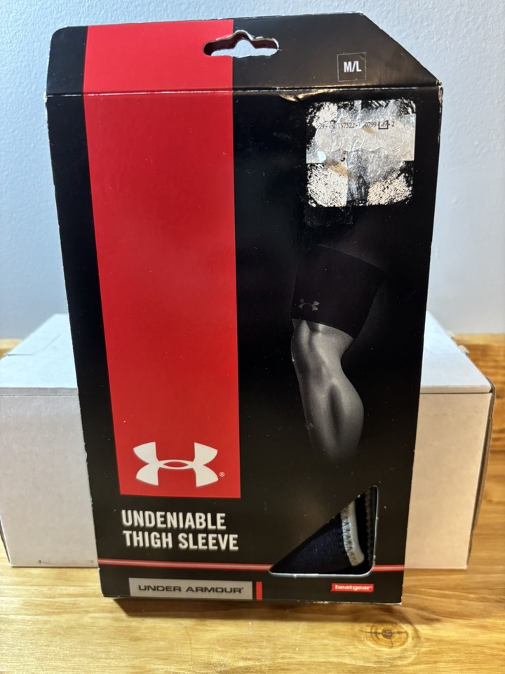 - “This Under Armour thigh sleeve is new open box. It is a size M/L”