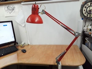 Vintage Red Articulated Swing Arm Desk Lamp READ (NO CLAMP)