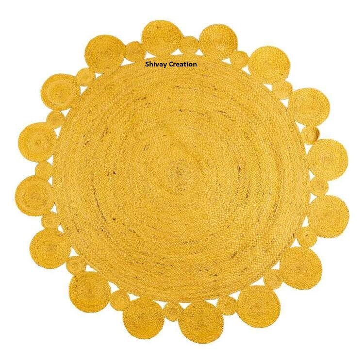 Rug Jute Natural 100% Jute Handmade Round Rug Reversible Braided Carpet Mats