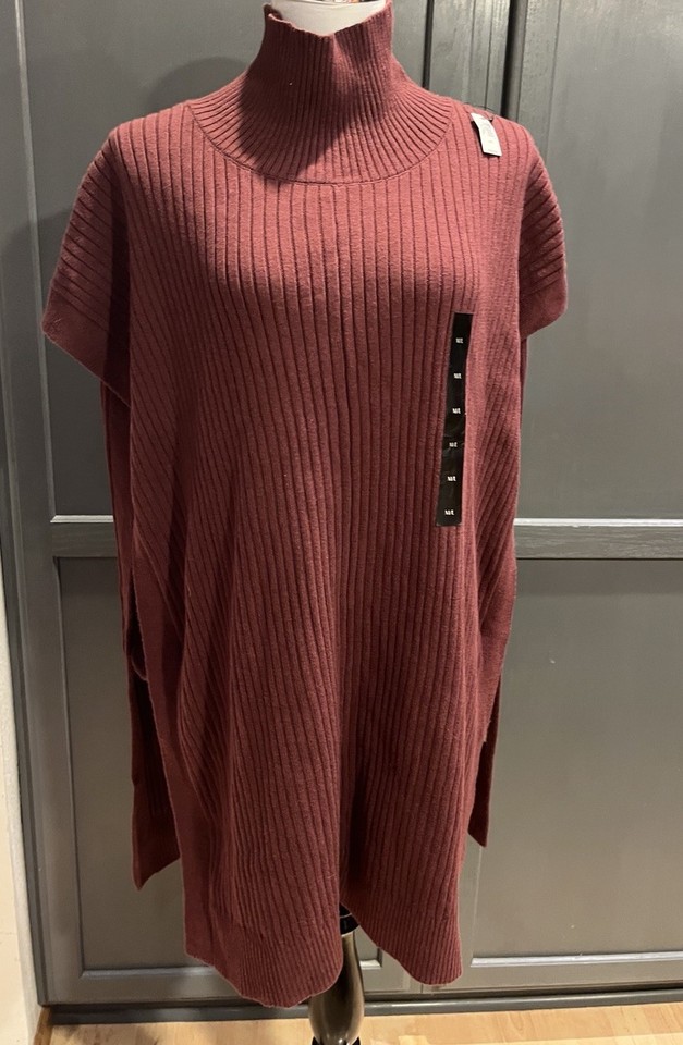 NWT Banana Republic Turtleneck Sweater Long Size M/L Burgundy Wine Open Sides
