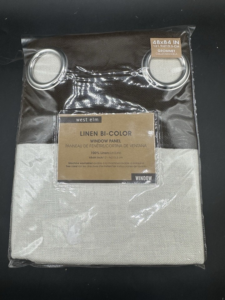 West Elm Linen Bi-Color Grommet Ivory Brown Tan Beige Window Panel 48X84