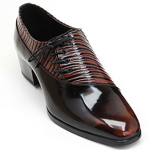 Men's leather side lace up unique wrinkle shape glossy brown dress shoes US 6-10
