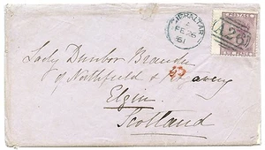 Gibraltar 1861 cover Great Britain 6d lilac with blue "A26" numeral to Elgin