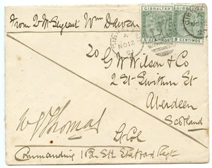 Gibraltar 1891 cover with 2 x 5c on a "Soldiers Letter" to Aberdeen, Scotland.