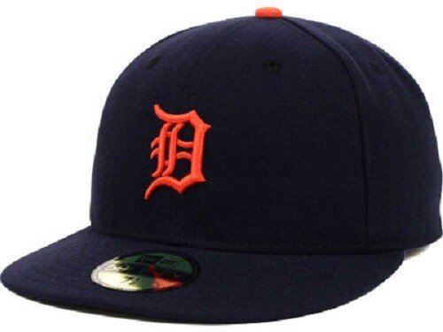 Detroit Tigers Men's New Era Navy Road Game AC Performance 5950 Fitted Cap Size7