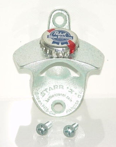 STARR BOTTLE OPENER Pabst Blue Ribbon & MAGNETIC CAP CATCHER Wall Mount Bar Beer