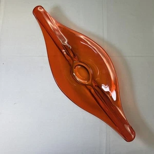 VINTAGE Really Long Console Bowl Dish By Viking Glass Persimmon Orange Red
