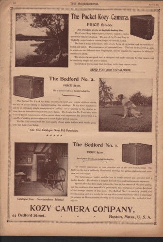1899 KOZY CAMERA COMPANY PHOTOGRAPHY POCKET BEDFORD BOSTON BOX FOLD AD 10132
