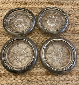 Vintage Italy Sunburst Coasters W&S Blackinton Silver Plate Cut Glass Set Of 4