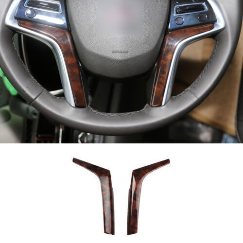 2pcs Cover Strip Trim Steering Wheel Sheet Wood Grain For Cadillac SRX 2013-2016