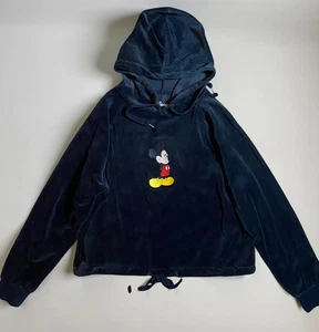 Disney Mickey Mouse Crop Blanket Fleece Drawstring Hoodie Black M