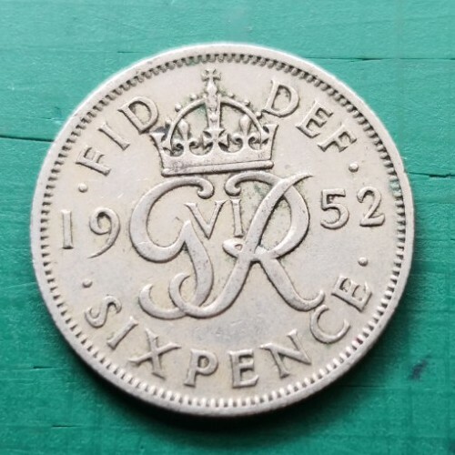 1952 scarce George VI sixpence copper-nickel #542