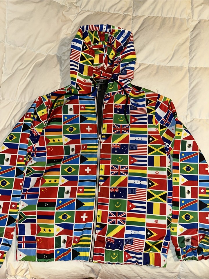 Forever 21 Men International Flags Full Zip Jacket Colorful Men's SIze Medium