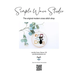 Black Cat Mid Century Atomic Cat Art Counted Cross Stitch Pattern KIT