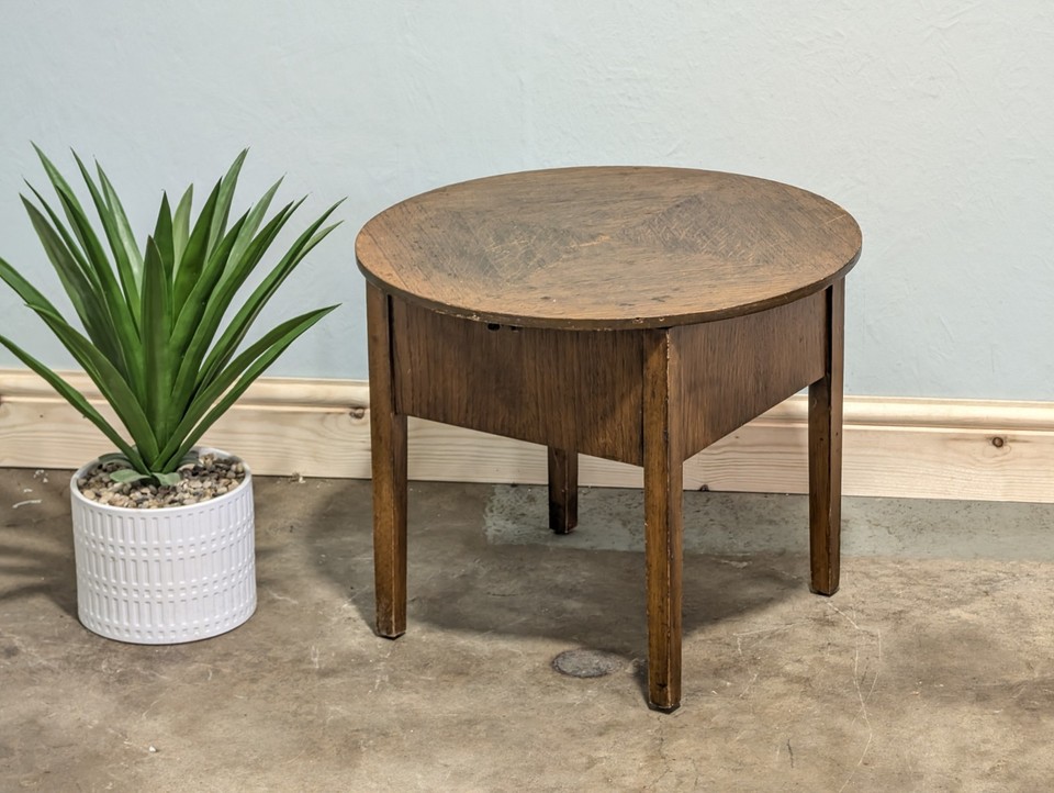 Vintage Oak Sewing Seamstress Table Knitting Side Table Round Top Original