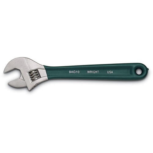 Wright USA 10" Green Cushion Handle Adjustable Wrench 9AG10 Capacity 1-1/8"