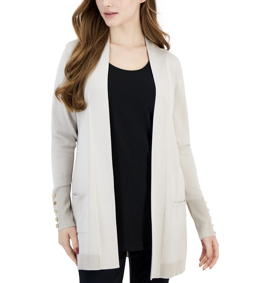 JM Collection Women's Open-Front Button-Cuff Cardigan Stonewall Petite Size PM
